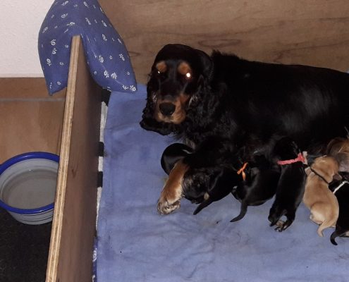 Die Welpen & Mama Deena sind alle wohl auf.