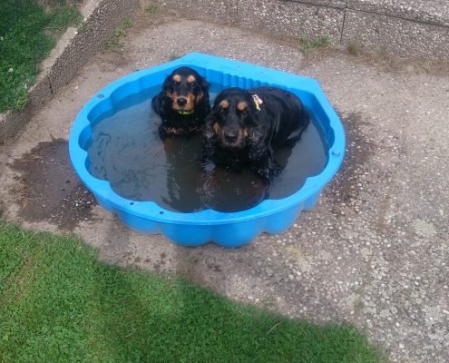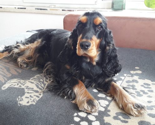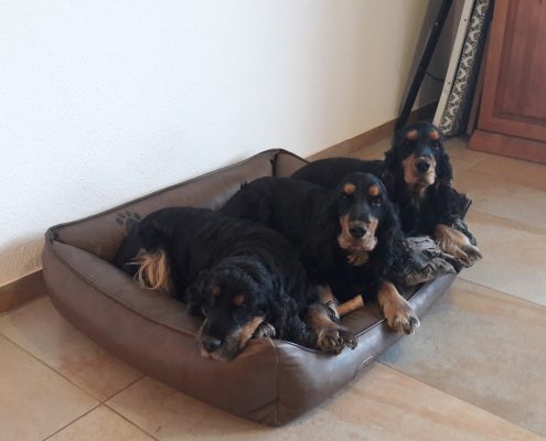 | Vererbt folgende Farben: | schwarz, schwarz mit Loh, braun, braun mit Loh, Rot. |