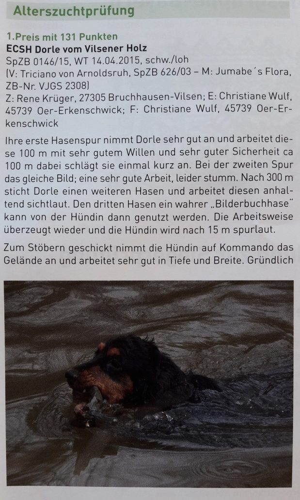 Deenas Schwester Dorle. Die hat vor kurzem den 1. Preis bei einer jagdl. Prüfung gemacht!