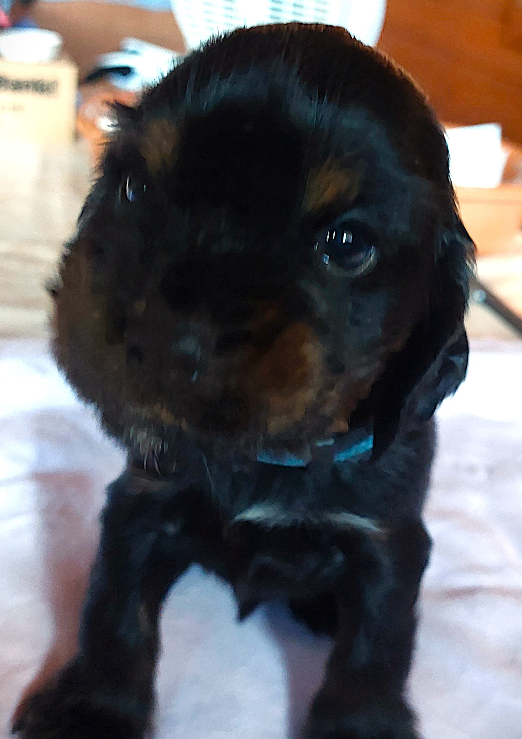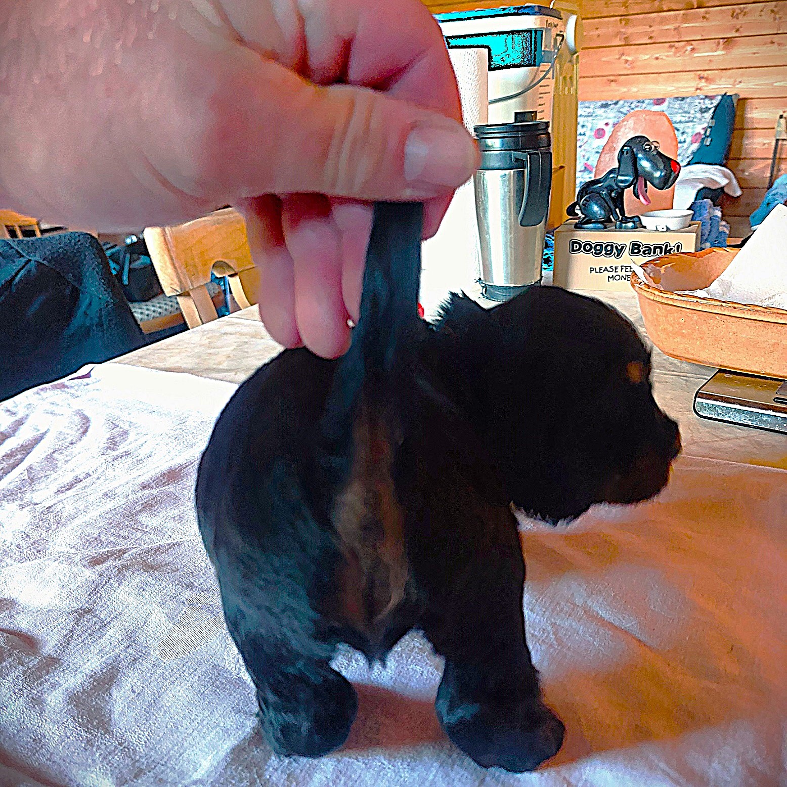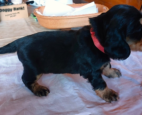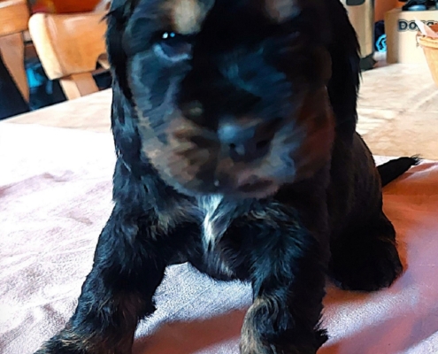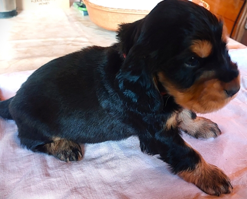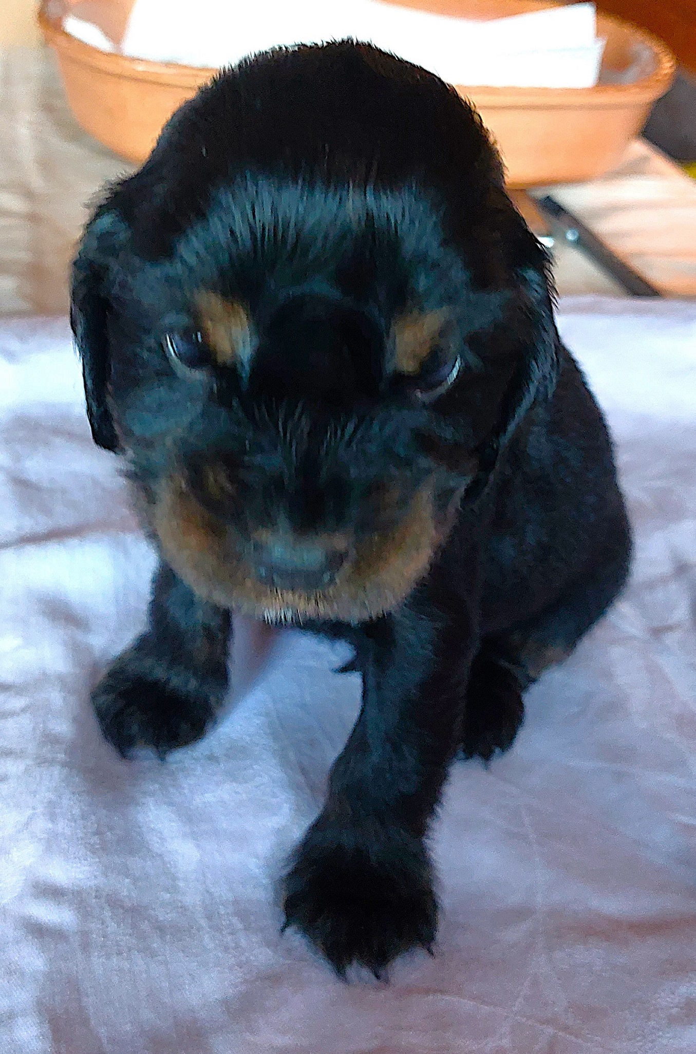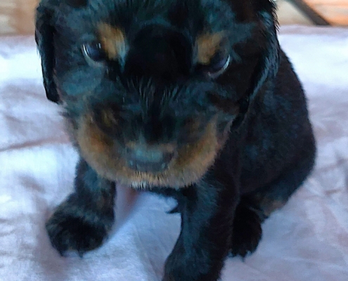 Farbe: Schwarz mit Loh mit weißen Abzeichen (Brust)