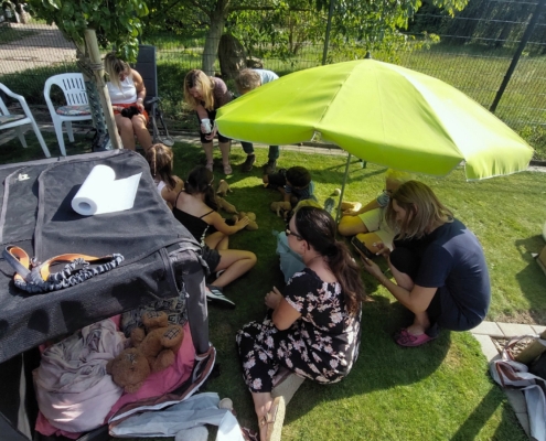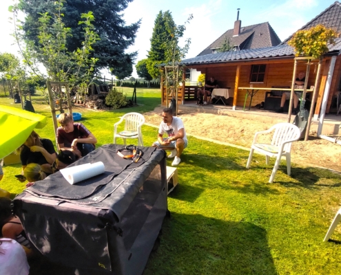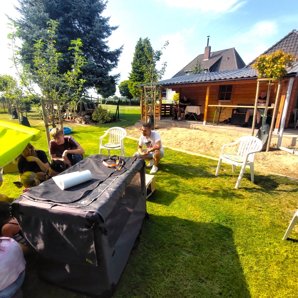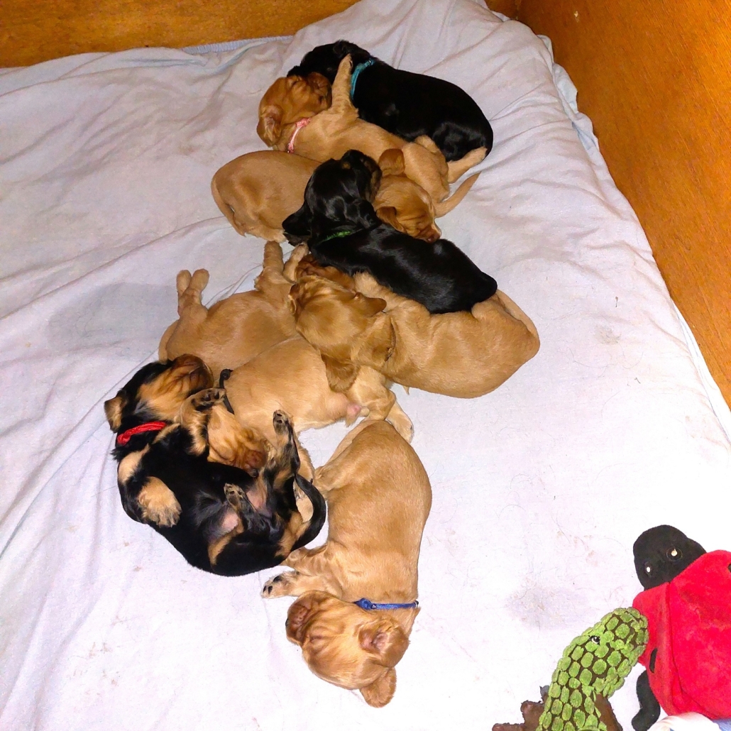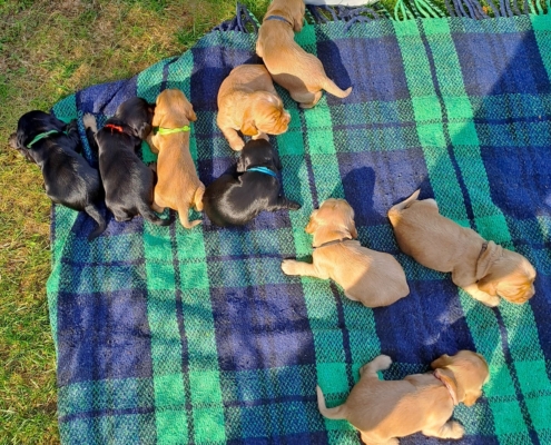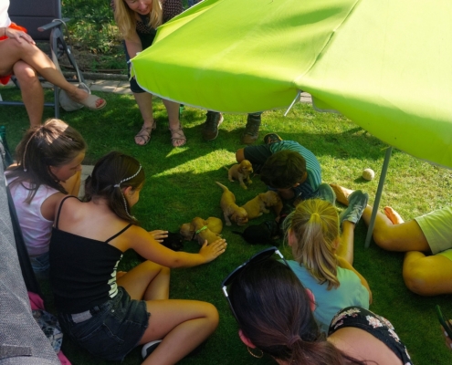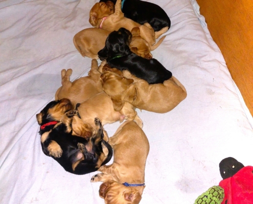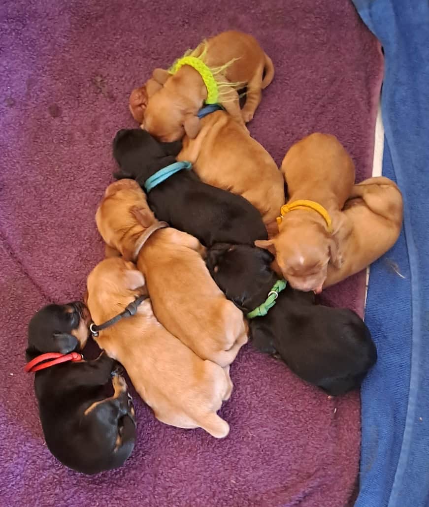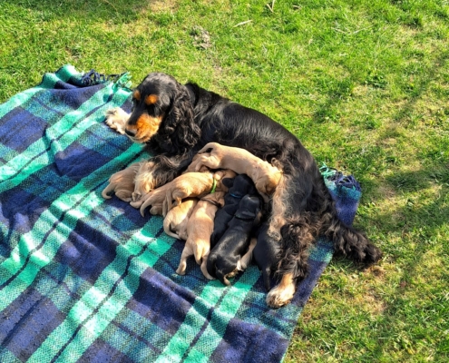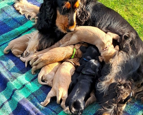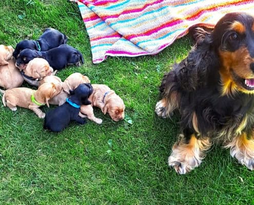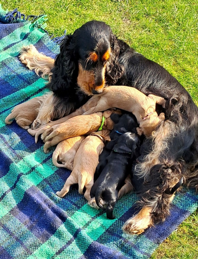Frida ist eine sehr fürsorgliche Mutter und kümmert sich vorbildlich um den sehr agilen Wurf. In sehr kurzer Zeit erblickten 9 Welpen das Licht der Welt.