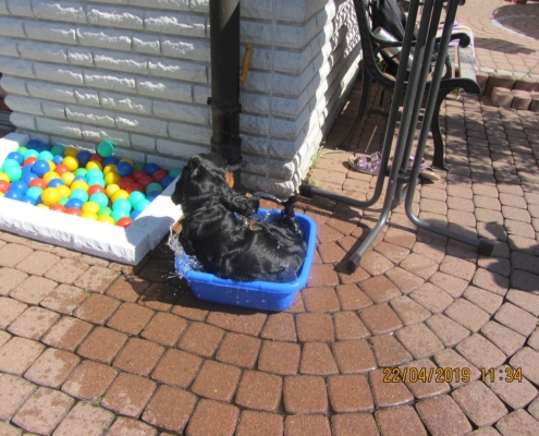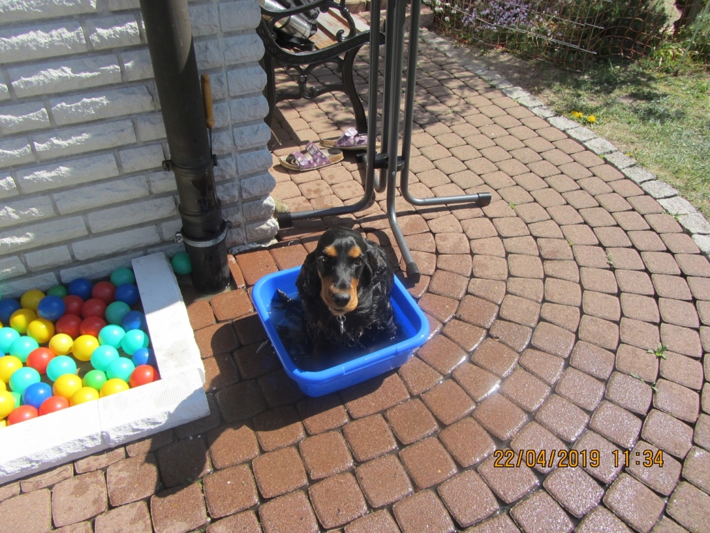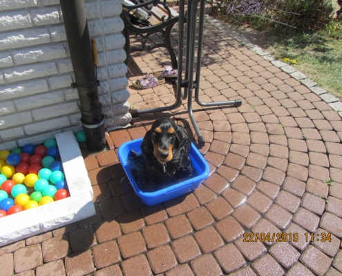 Da auch der Rüde „Schoko Toffee´s faithful Fyn“ (Rufname „Felix“) auf Grund eines wichtigen privaten Umstandes in der Besitzerfamilie kurzfristig nicht zur Verfügung stand, kam es so am 20./22.04.2019 zu einer erfolgreichen Liason wie vor 2 Jahren mit dem Rüden „Fanbis Elton“ (Rufname „Moritz“). Erfolgreiche Aufnahme vorausgesetzt ist der „F“ – Wurf für Ende Juni 2019 zu erwarten.