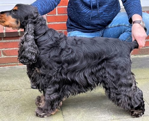 Robby bevorzugte das Frei-Decken. Nachdem er daneben „schoss“ dachten wir, -dass ja auch andere Hundemuttis noch hübsche Söhne haben. Und so fuhren wir nach Wilhelmhaven und Wymeer, wo sich „Frida“ & „Schoko Toffees faithful Fynn“ zwei Mal (Nachdecken 16.03.22) der Liebe hingaben. Vorbehaltlich erfolgter Aufnahme wird der Wurf Mitte Mai erwartet“.